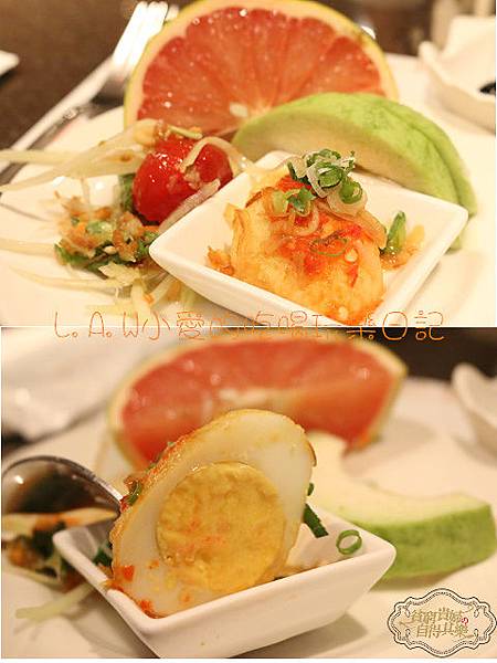 還有這款泰式炸蛋,炸到表皮有點脆拌上泰式沙拉醬,都好開胃跟清爽哦!!