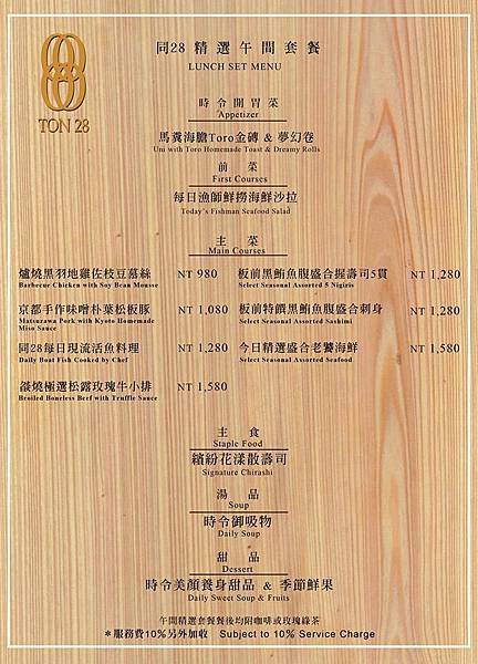 附上同28壽司午間及晚間套餐 MENU菜單參考